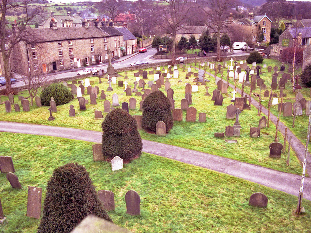 The National School was in the present churchyard, in the centre of the photograph. It served from 1839 to 1874 when it became inadequate for the village and the vicar needed more churchyard.