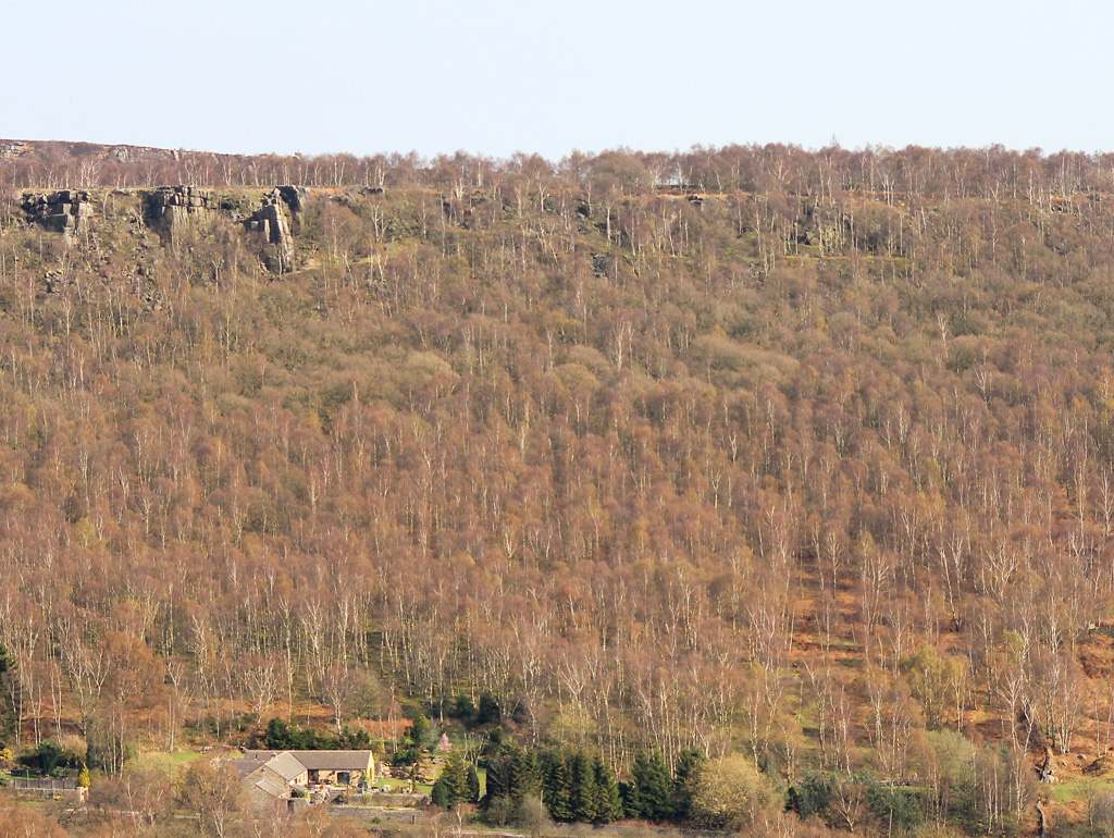 Hidden under Gardoms Edge, and just visible in the photo are a series of ancient millstones quarries. They may well have been worked by the Gardom family, who lived for centuries at Yeld Farm underneath the edge.